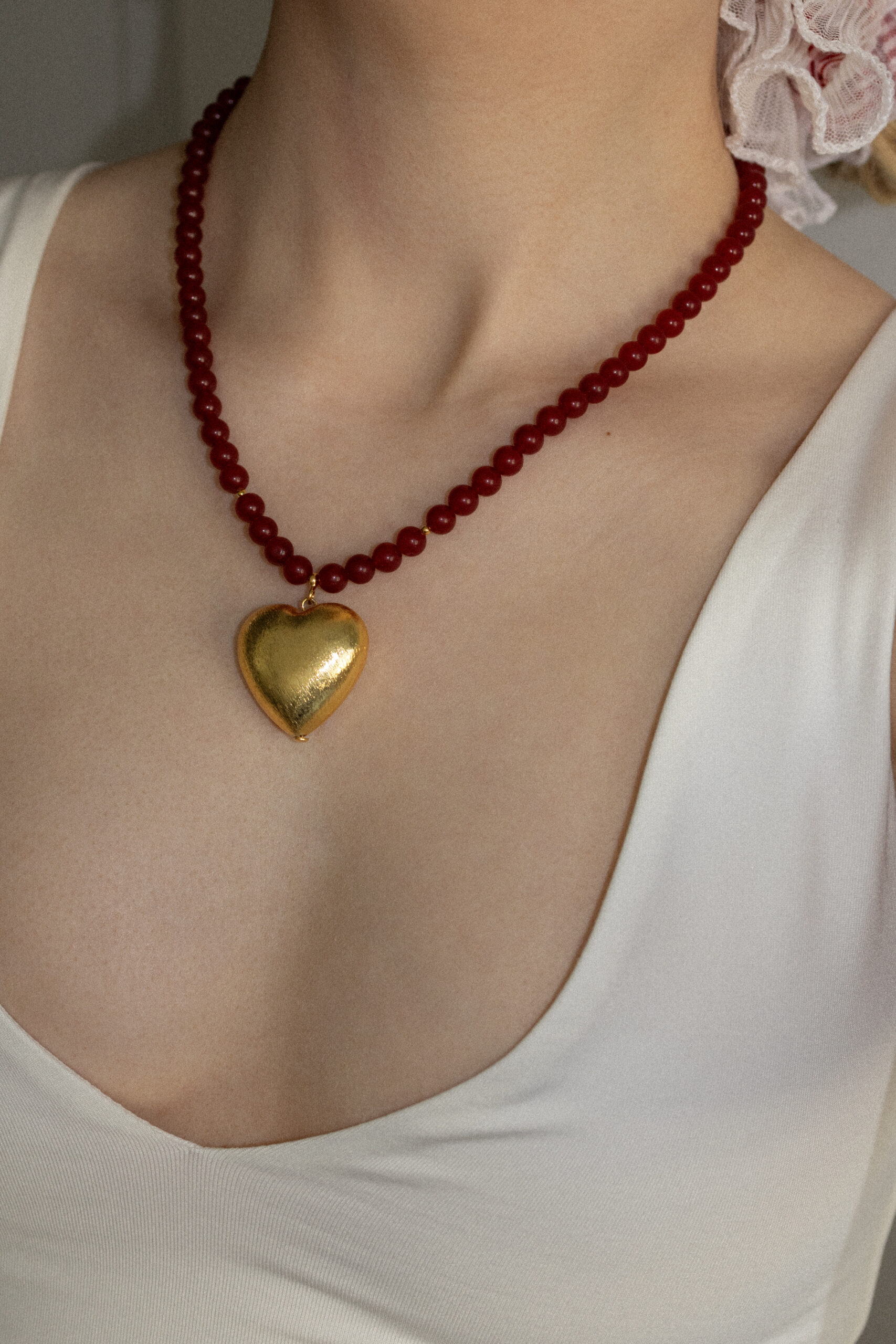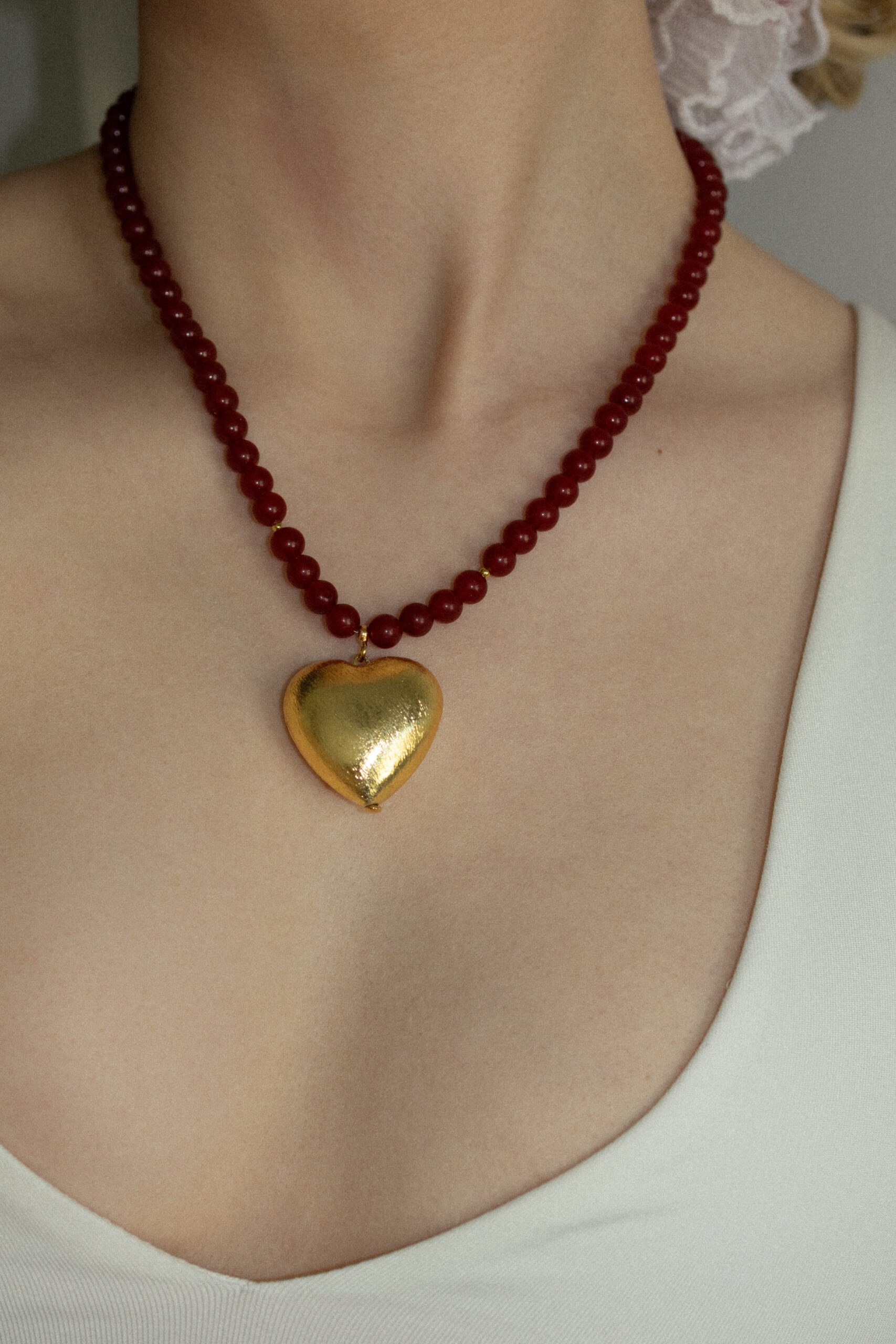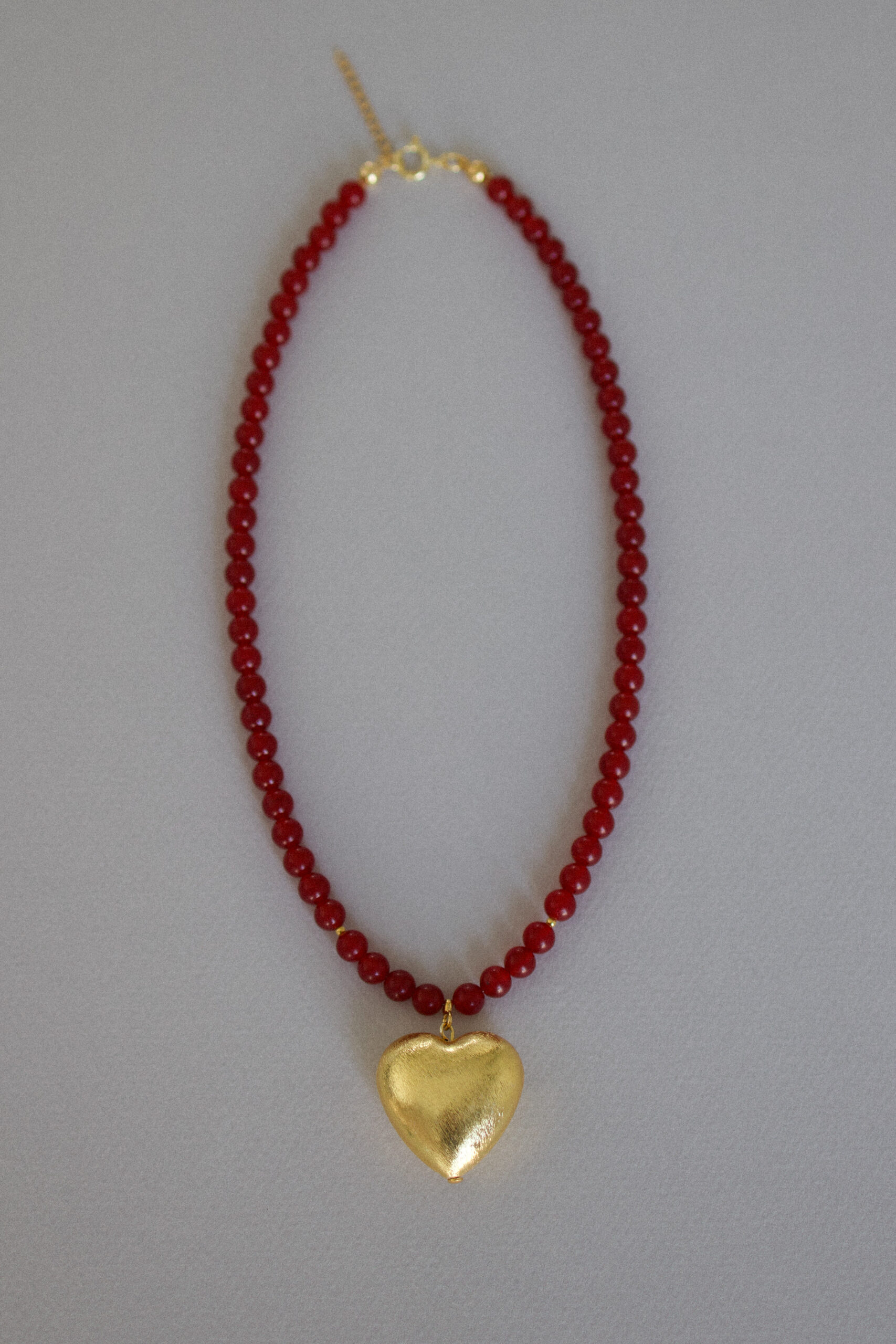 Naszyjnik z czerwonym jadeitem i dużym sercem Amorina